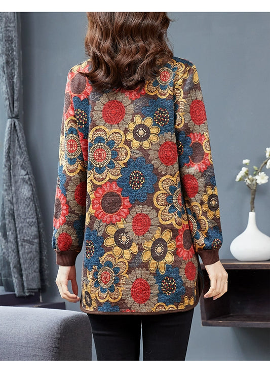 【M-6XL】2023 Toamna și iarna Nouă catifea îngroșată catifea largă Retro imprimat Top